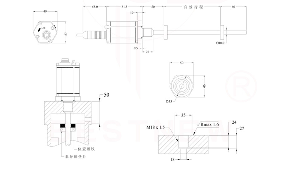 19 series magnetostrictive displacement sensor is a newly developed digital intelligent magnetostrictive displacement sensor. It adopts non-contact magnetostrictive measurement technology. This technology can provide high-speed, high-precision, direct and absolute displacement output. The non-contact design is not only convenient for installation, but also can eliminate all errors caused by working wear.